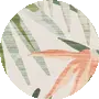 Coastal, tropical area rug featuring a tropical botanical pattern in shades of beige, green, salmon pink, orange, and peach.