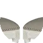 Brimming with French country charm, this set of two dining chairs boasts a classic cream frame, light grey linen upholstery and Provencal style oval back. With elegant carving and silver nail heads these chic chairs complement myriad decorating styles.