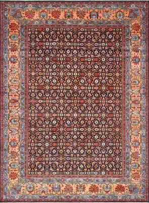 Pasargad Home Herati Hand-Knotted Wool Floral Area Rug- 8' 10" x 12' 0", Navy