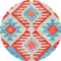 Drawing the eye is the rug's captivating pattern: a bold interplay of red and blue hues, accented by touches of softer tones to create a dynamic visual feast. Diamond motifs, symbolic of timeless elegance, are framed by intricate borders, giving the design depth and structure, while its vibrant color palette ensures it will become the focal point of any room._x000D_