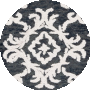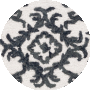 The rug showcases a stunning black and ivory color palette, imbued with an intricate pattern that exudes a classic charm with a contemporary twist. The design features bold, symmetrical motifs that are reminiscent of traditional damask patterns, with a modern flair that makes it versatile for various interior themes from classic to modern._x000D_