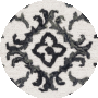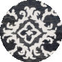 The rug showcases a stunning black and ivory color palette, imbued with an intricate pattern that exudes a classic charm with a contemporary twist. The design features bold, symmetrical motifs that are reminiscent of traditional damask patterns, with a modern flair that makes it versatile for various interior themes from classic to modern._x000D_