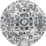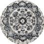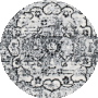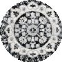 The rug's enchanting palette of black and grey hues, captured in the image provided, creates a captivating contrast and depth within its intricate pattern. Delicate motifs reminiscent of classic design elements radiate from the central medallion, flowing effortlessly into the softened corners and the finely detailed border, making it an opulent centerpiece for any room._x000D_