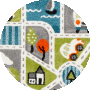 The rug features an engaging pattern that sparks the imagination, with neatly designed roads meandering around colorful scenes that include whimsical trees, water elements with sailboats, cozy houses, and a selection of friendly vehicles like cars, an ambulance, and even a tractor. The palette is thoughtfully selected, making use of shades of green and grey to create a playful yet cohesive look that is sure to delight children and adults alike._x000D_