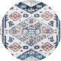 The rug's enchanting pattern features an alluring blend of ivory and blue hues, creating a serene yet captivating visual appeal. Symmetrical motifs and geometric shapes dance across the rug's field, encased in an elegant border that adds definition and character to the overall design. This harmonious blend of color and pattern makes it a versatile addition to any room, whether you're looking to add a subtle hint of elegance to your living room, bedroom, or dining area._x000D_