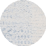 The rug's pattern, derived from the image provided, reveals a subtle yet captivating ivory and blue motif that suggests a serene and soothing ambiance. This design incorporates an array of abstract and geometric patterns, softly blending into one another to evoke a sense of motion and fluidity, while still maintaining an overall sophisticated and cohesive look._x000D_