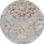 A harmonious blend of blue and gold hues envelops the traditional design, giving life to an intricate pattern that draws inspiration from classic motifs. The ornamental pattern presents a central medallion, bordered by detailed floral and vine elements, radiating a sense of luxury and time-honored aesthetic._x000D_