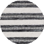 The rug's pattern, visible in the image, showcases a series of black and ivory stripes with a dynamic, alternating thickness that captivates the eye and invites conversation. Whether placed in a living room, dining area, or bedroom, this rug will serve as a striking focal point that complements both contemporary and traditional interiors._x000D_