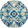The rug's intricate pattern, as depicted in the image, tells a story of traditional design, with rich navy and subtle creme hues forming a captivating motif. This pattern, harmoniously balanced and symmetric, pays homage to the timeless artistry of classic rug-making._x000D_