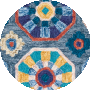 The captivating design radiates from the heart of the rug, with symmetrical patterns cascading across in a mesmerizing sequence. The playful mix of blues and ivory create a visual symphony, accented by delightful pops of yellow, red, and green. These vibrant shades harmoniously blend to form intricate geometric and floral motifs that are bound to become conversation starters._x000D_