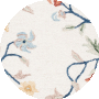 Adorned with a charming floral pattern, this rug features delicately intertwined branches blooming with flowers in a spectrum of soft pastel hues, set against an elegant ivory background with a contrasting navy blue border. The intricate details and subtle color palette of this design infuse a serene and natural ambiance into any living space, making it an ideal choice for those wanting to create a haven of tranquility._x000D_