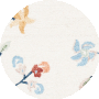 Adorned with a charming floral pattern, this rug features delicately intertwined branches blooming with flowers in a spectrum of soft pastel hues, set against an elegant ivory background with a contrasting navy blue border. The intricate details and subtle color palette of this design infuse a serene and natural ambiance into any living space, making it an ideal choice for those wanting to create a haven of tranquility._x000D_