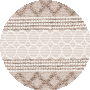 The rug showcases a harmonious pattern with rows of geometric shapes, reminiscent of traditional motifs, seamlessly blended with circular link designs that create a sophisticated and timeless aesthetic. The neutral ivory and brown palette of this piece ensures it will complement a variety of interiors, from contemporary to classic._x000D_