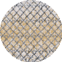 The modern style of the rug is expressed through its dynamic gold and grey color palette, creating a warm and inviting atmosphere. The unique pattern features an intricate blend of grey hues overlaid with golden lines that form a captivating abstract grid design. This visually stunning rug promises to be the focal point of any room, complementing both contemporary and traditional decor._x000D_