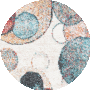 The captivating pattern, as displayed in the image, features an array of overlapping circles in a harmonious blend of ivory and rust hues, accented with shades of blue and red. This dynamic design is a beautiful expression of modern artistry that will stand out and complement your d?cor._x000D_