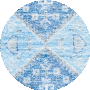 The alluring color palette of blue and ivory sets a serene backdrop for the captivating pattern displayed in the image. The rug showcases a symmetrical layout with intricate detailing and a central motif that serves as a visual anchor. Geometric borders frame the composition, adding depth and interest to the overall design._x000D_