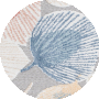 The rug's aesthetic is an exemplar of contemporary design, featuring an artful pattern of leaves in a harmonious palette that includes soft shades of grey, tranquil blues, and warm browns, which can complement a wide range of decors. It's a pattern that speaks of botanical beauty and modern simplicity, ready to anchor your living space or outdoor area with its understated charm._x000D_