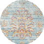 Introducing our exquisite Medium Rectangle area rug, a seamless blend of traditional charm and modern craftsmanship. Sized at a comfortable 5 feet 3 inches by 7 feet 6 inches, this rug is a perfect addition to any living space, bringing with it a serene blue base elegantly complemented by a variety of multicolored motifs._x000D_