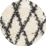 Elevate your living space with the luxurious sophistication of our round 6'-7" X 6'-7" area rug, a perfect blend of Ivory and Charcoal hues. The eye-catching diamond trellis pattern adds an element of contemporary elegance to any room, while the plush 2 1/8" pile height ensures a soft, shaggy texture underfoot._x000D_