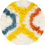 The dynamic pattern of this area rug features elegant curves and bold colors in a trellis design that brings life to any room. The ivory backdrop is embellished with an array of vivid hues including sunny yellow, deep blue, autumnal orange, and refreshing green, creating a harmonious blend that complements a variety of decor schemes._x000D_