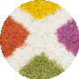 Exude a vibrant and playful ambiance with the rug's eye-catching pattern featuring bold geometric diamond shapes in a delightful array of colors including teal blue, sunny yellow, lively orange, rich fuchsia, and refreshing green, all set against a soft ivory background. These colors harmonize to create a dynamic visual effect that will become the centerpiece of any room._x000D_