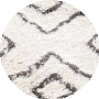 The rug's design features an elegant geometric pattern with diamond and chevron motifs, rendered in subtle, contrasting shades of ivory and beige. This creates a soothing, neutral palette that complements a wide range of home decor styles, from the contemporary to the classic._x000D_